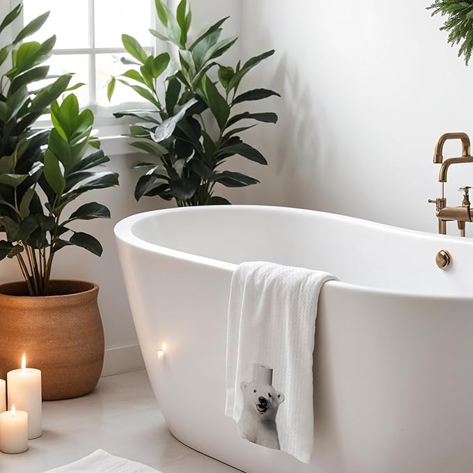 Polar Bear Hand Towels for Bathroom, White Bear Bathroom Hand Towels, Bear Bathroom Decor, Funny Hand Towels, Polar Bear Gifts for Bear Lovers Women, 16x24 Inch