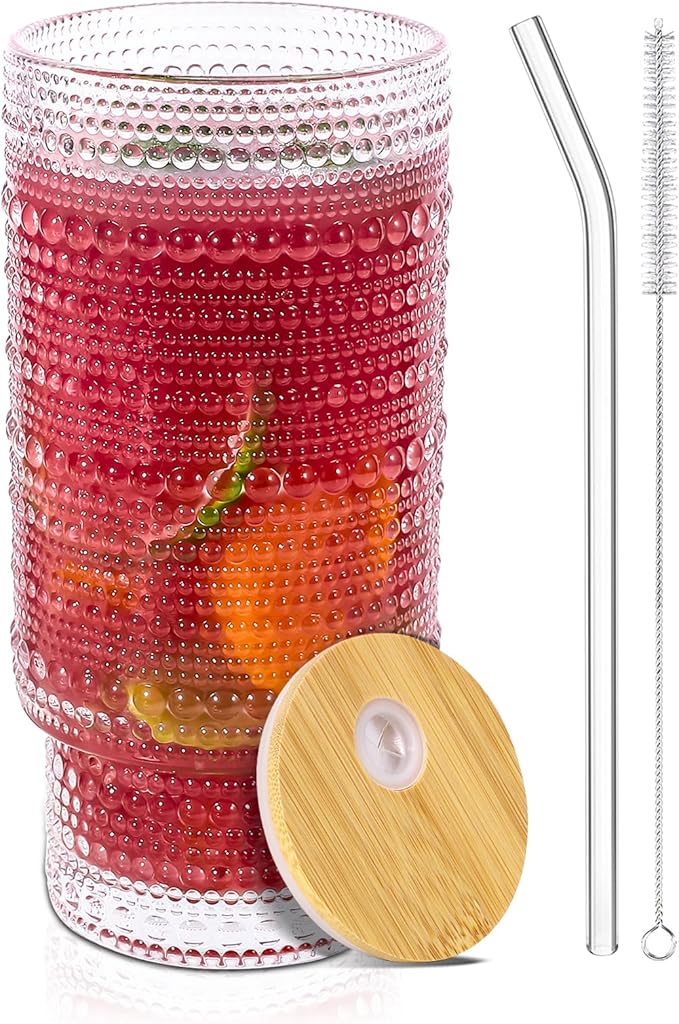 - 【What You Will Get】 1PC 16OZ Embossed Glass Cups with Bamboo Lids, 1PC reusable glass straws, 1PC cleaning brushes. ---The cups are dishwasher safe and microwave safe, very practical combination set, take it home without hesitation