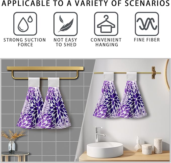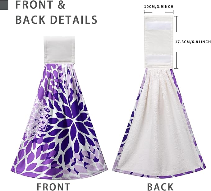 Purple Dahlia Hanging Kitchen Dish Towels Floral Hand Towel with Loop Violet Flower Bathroom Tie Towels Soft Absorbent Tea Towel for Bathroom Kitchen Decor Housewarming 12 x 17 Inch
