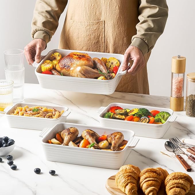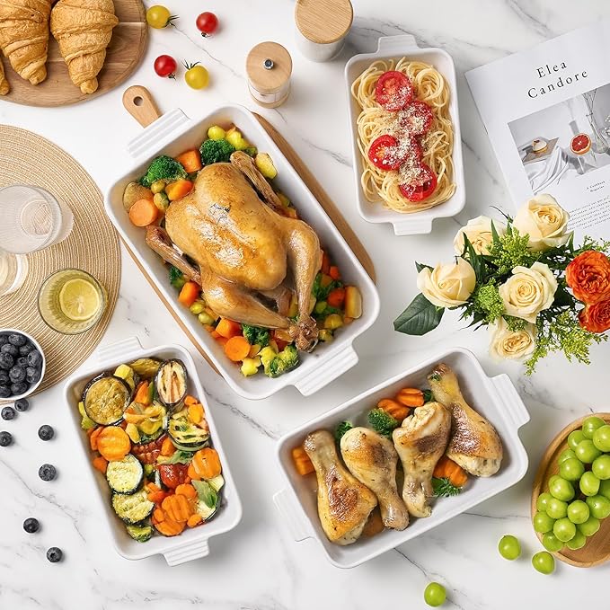 - [Juicier, Tastier Meals Every Time] Each ceramic baking dish is crafted from dense, non-porous material that seals in moisture and enhances flavor. Ideal for casserole dishes for oven use, your meals come out perfectly tender and packed with taste—every single time