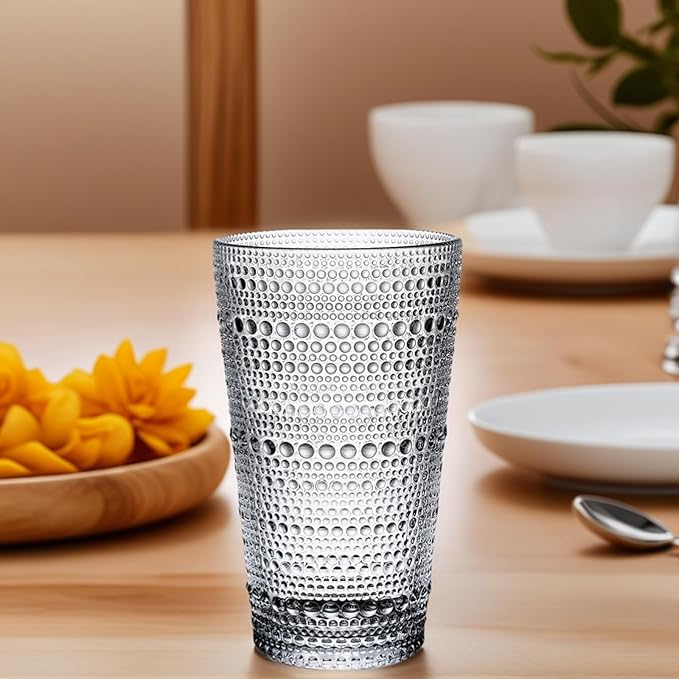 - - Elegant Hobnail Texture: The dot design of these glass cups not only adds a modern aesthetic but also provides a non-slip grip, ensuring comfort and stability while you enjoy your favorite beverages.