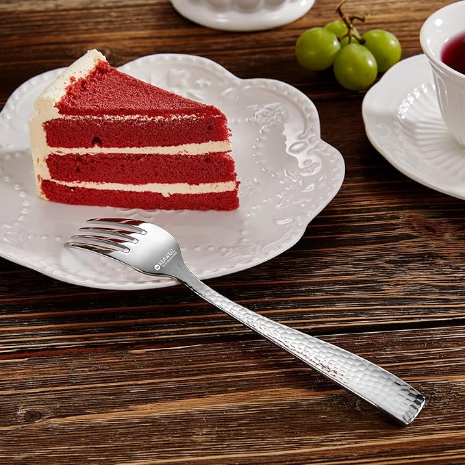 KEAWELL Premium 8-Piece 7.6 inch Louis Hammered Fork Set, 18/10 Stainless Steel, Squared Edge with Smooth Rounded Edges for Enhanced Comfort, Dishwasher Safe (8, 7.6" Salad Fork)