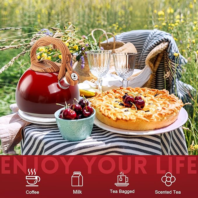 - 【Elegant Cherry-Red Gradient】 The GGC tea kettle features a beautiful ruby-to-crimson gradient, paired with a wood-texture handle for a touch of luxury. Its warm, rich hues elevate your morning tea ritual or afternoon brewing, adding instant sophistication to your kitchen