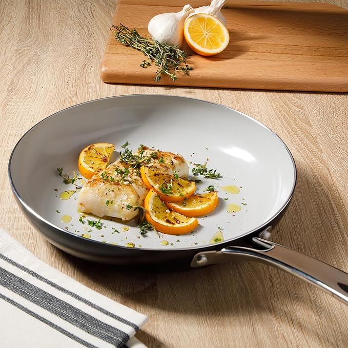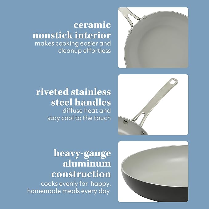 - CERAMIC NONSTICK COOKWARE: easy-release interior makes more room for healthier cooking options and less time for cleanup.