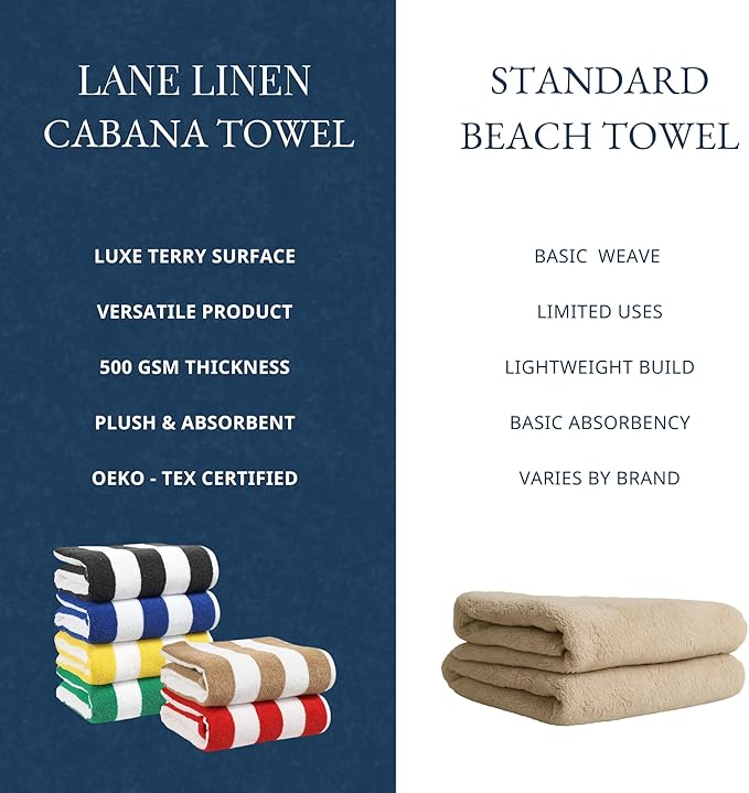 - Looking for the perfect beach towel? Lane Linen 100% Cotton oversized beach towels offers optimal coverage for maximum comfort, extremely absorbent and fluffy, making them perfect for lounging by the pool or enjoying a day at the beach. So what are you waiting for? Get ready to relax in style!