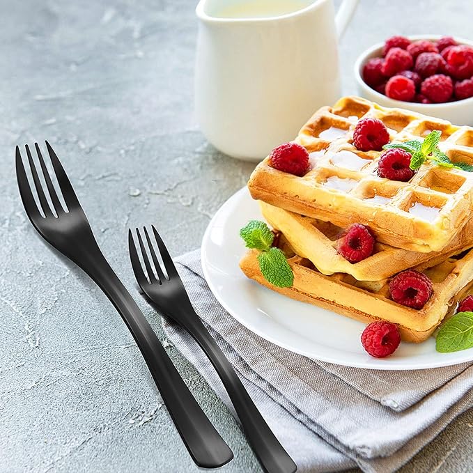 Black Silverware Set, Bysta 40-Piece Flatware Set, Stainless Steel Utensils Service for 8, Tableware Cutlery Set for Home and Restaurant, Include Knife/Fork/Spoon, Satin Finish, Dishwasher Safe