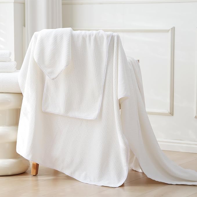 - SUPER SOFT & ABSORBENT: The towel crafted from lightweight microfiber, our bath towels are super soft to the touch while offering exceptional absorbency. Enjoy a plush feel against your skin with these high-quality bathroom towels that quickly wick away moisture.