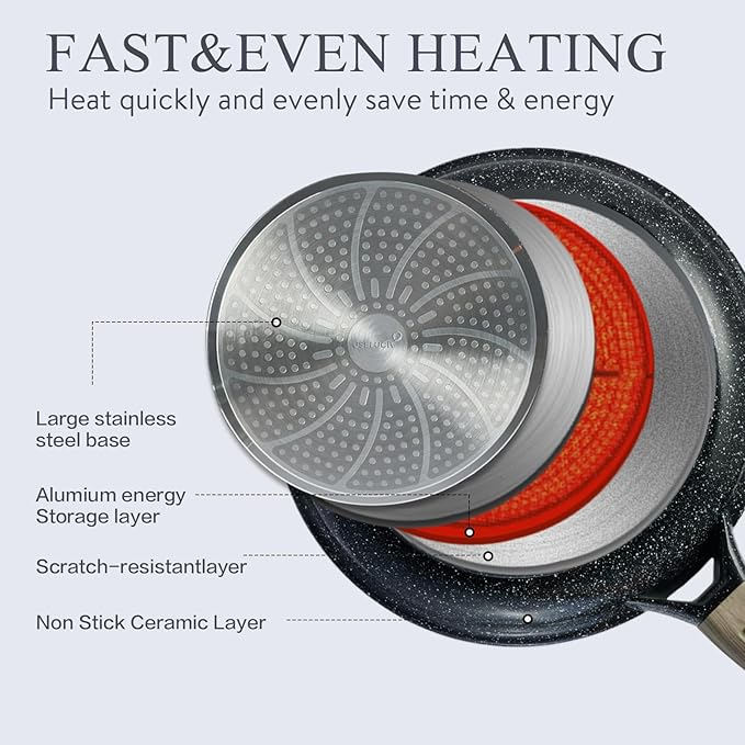 - 100% NON-TOXIC& HEALTH SAFE: Made with a PFOS, PFOA, and Teflon-free ceramic coating for a safer cooking experience.