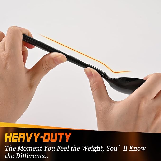 - Classic Style Design: This black flatware set features a simple design with rounded handles for a comfortable grip. Its sleek, modern look easily complements any table setting. Compared to regular flatware, it’s thicker, stronger, and more durable, giving you a more solid, high-quality feel with every use. Whether for everyday meals or dinner parties, it provides a reliable and sturdy experience.