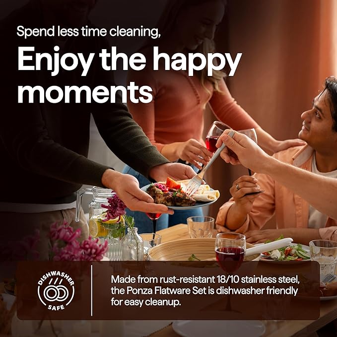 - Dishwasher Safe & Built to Last: Whether you're entertaining guests or enjoying a cozy family dinner, this dishwasher-safe silverware set makes mealtime cleanup so easy. Its high-quality, rust-resistant stainless steel ensures long-lasting durability, making it an excellent choice for both casual dining and formal settings.
