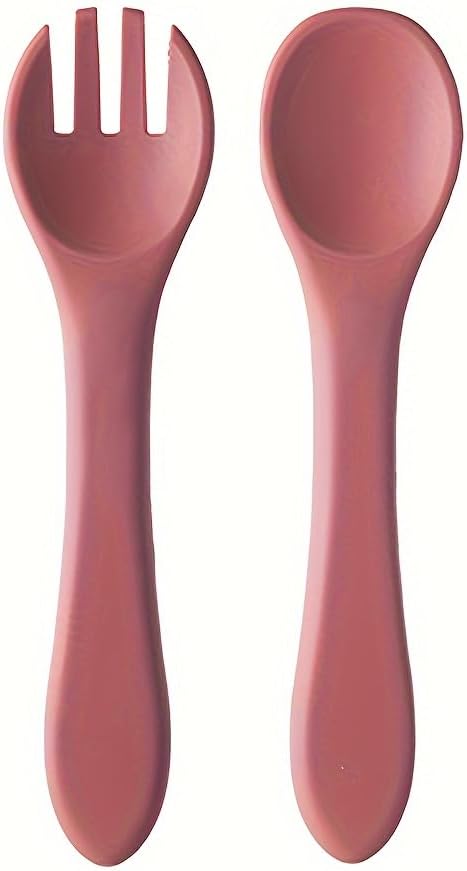- Spoon & Fork – Rounded edges protect gums, perfect for tiny hands.