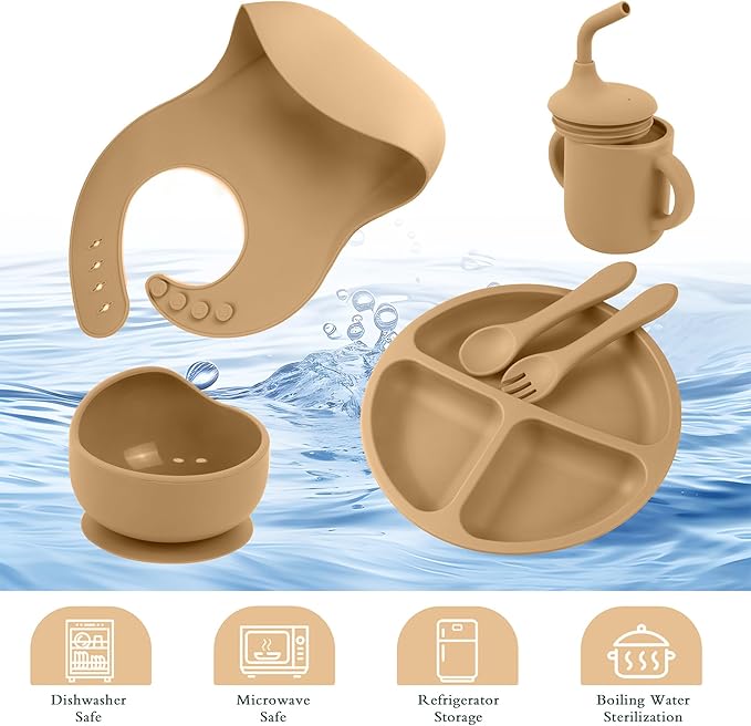 - Silicone Bibs – Extra-wide crumb catcher + adjustable neck for growing babies.