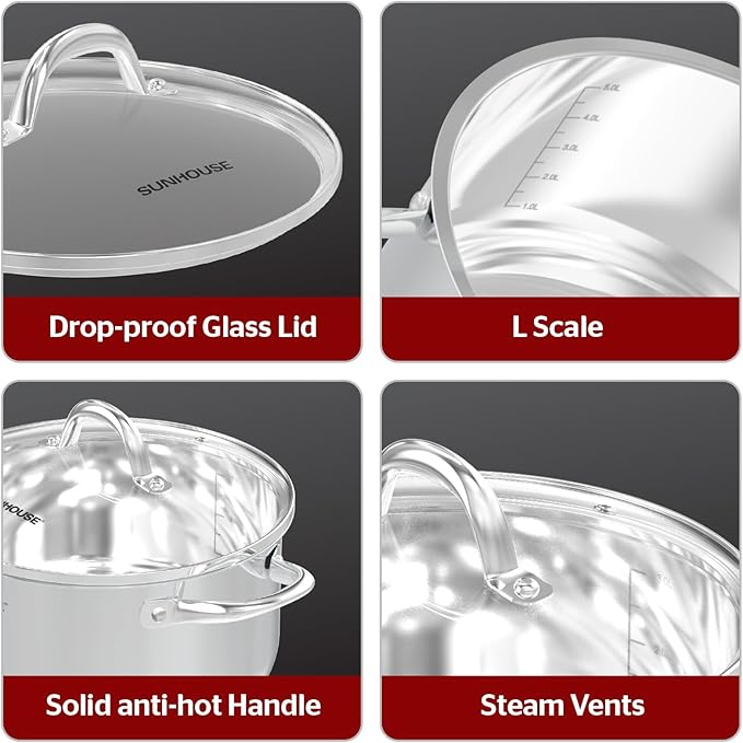 - [HIGH-QUALITY STAINLESS STEEL] - Made from premium stainless steel that resists corrosion, rust, and food reactions. No warping, cracking, or chipping. Free from toxic materials, ensuring safe and healthy cooking. Durable and built for all your simmering, boiling, and cooking needs. Easy to clean and dishwasher-safe.