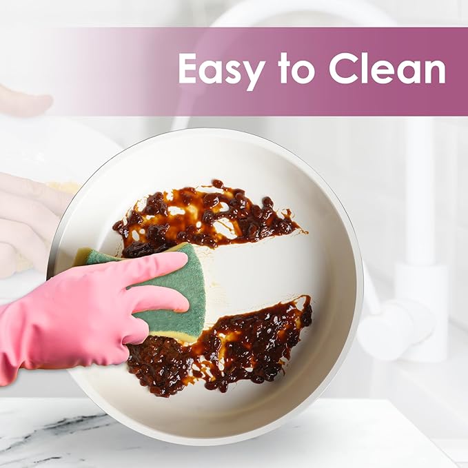 - Easy to Clean: Double sided ceramic nonstick cookware set make cleaning easy, A quick rinse or wipe will easily remove any residue, keeping your cookware spotless and in perfect condition effortlessly