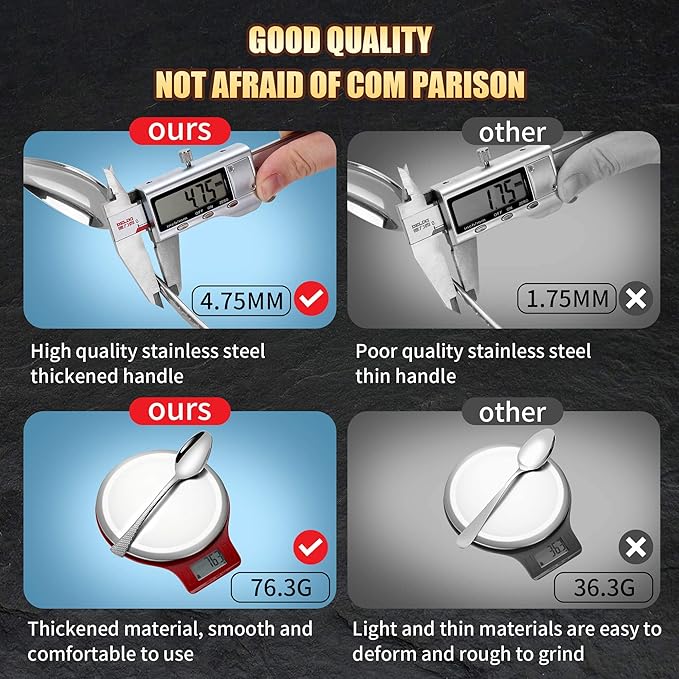 - Premium Stainless Steel Design : Our cutlery set uses high-quality stainless steel, which is not only strong, durable but also easy to clean. The polished surface makes your dining experience more enjoyable