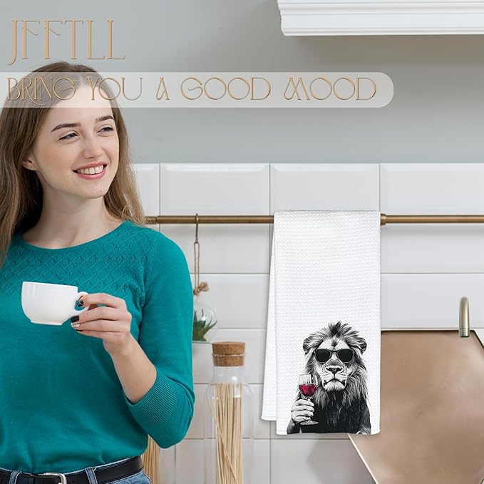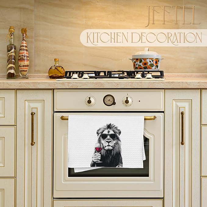 Funny Lion Kitchen Towels, Lion Lover Gifts Dish Tea Towels for Home Bar Kitchen, Wine Lover Gifts, Funny Hand Towels for Bathroom,16x24 Inch