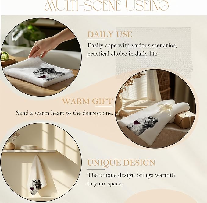 - Unique Designs: Featuring an elegant wine-themed Golden Retriever design, these towels bring warmth, love, and creativity to your bathroom and kitchen space. Whether as a thoughtful gift or for everyday use, they make a perfect choice.