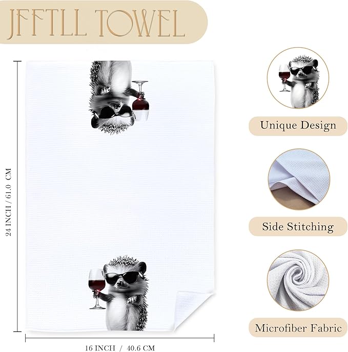 Funny Hedgehog Kitchen Towels, Hedgehog Gifts Dish Tea Towel, Bar Towels for Bartender, Wine Lover Gift, 16x24 Inch