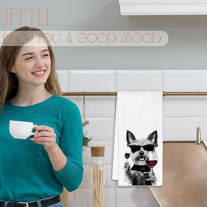 Funny Yorkshire Terrier Wine Kitchen Towels, Yorkshire Terrier Yorkie Gifts Dish Tea Towels for Kitchen Decor, Dog Lover Gift, Bar Towel for Bartender Kitchen, Wine Lover Gift, 16x24 Inch