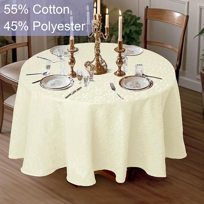 Cream Round Tablecloth 70 Inch (4-6 Seat) - Cotton Polyester, Wrinkle/Fade Resistant, Reusable - Luxury Jacquard Table Cloth - 1PC Circle Table Cover for Dining, Wedding & Birthday Party, Cream Bows