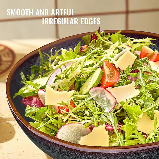 - Unique Irregular Edge and Handmade Design, Featuring an irregular edge and handmade craftsmanship, each piece boasts a unique, modern look. The reactive glaze creates a random speckled pattern, blending artisanal imperfection and contemporary elegance, transforming meals into chic moments while harmonizing rustic charm with modern décor