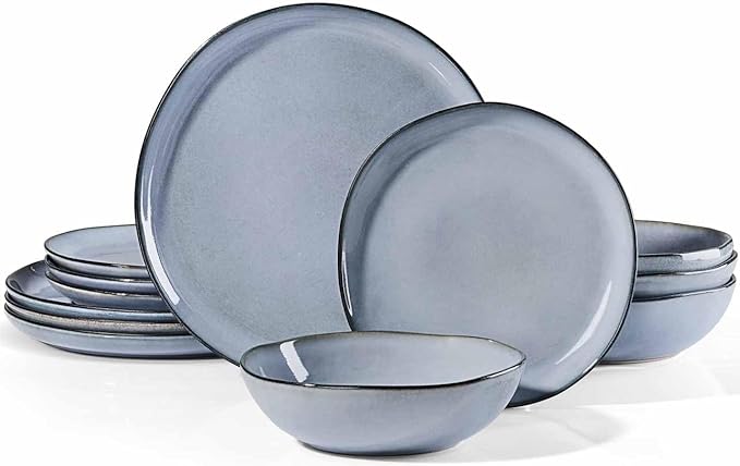 - Sturdy Material and Healthy Glaze, Crafted from high-temperature fired (2340°F) natural clay and food-grade reactive glaze, this 12-piece ceramic dinnerware set offers chip-resistant durability, microwave/oven/dishwasher/fridge safety, and ensures long-lasting use without harmful substances