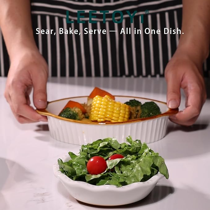 - Oval design: The size is 8.7"Lx5.3"Wx1.8"H.Baking dish set for 1 or 2 person servings