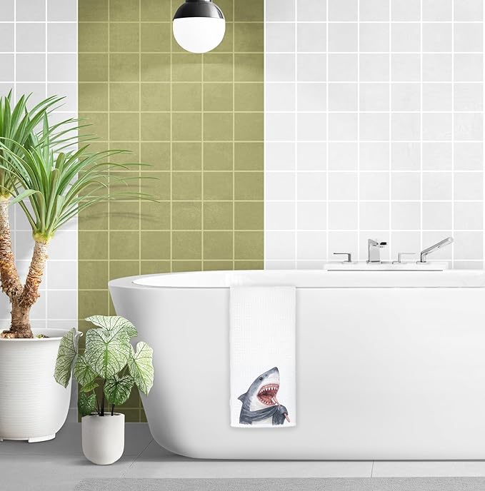 Shark Towels Decor,Shark Lovers Gifts Bathroom Kitchen Decor,Kids Hand Towels for Bathroom Kitchen 16x24 Inch
