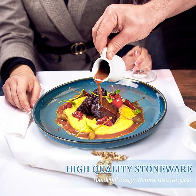 Plates and Bowls Sets, Ceramic Dinnerware Sets, 12 Pieces Modern Stoneware Dinnerware Set for 4, Reactive Glaze Dinnerware Set for Home Kitchen, Scratch Resistant, Microwave and Dishwasher