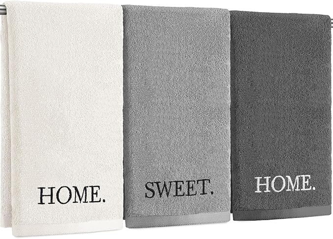 - Embroidery Design: each hand towel's edge is cleverly adorned with heartwarming words: "Home Sweet Home"; These words are delicately embroidered, showcasing refinement and beauty with every stitch, not only enhancing the towel's artistic appeal but also imparting a unique emotional value