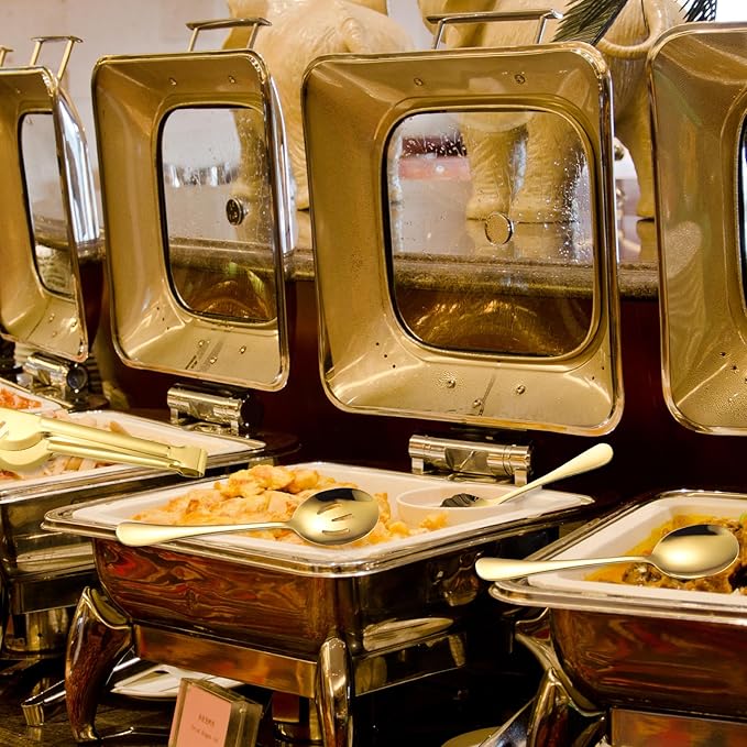- VERSATILE FOR EVERYDAY USE OR SPECIAL OCCASIONS: Elevate your dining experience with this elegant Party Gold Flatware Serving Set. Made with high-quality stainless steel, this set is designed specifically for serving guests at special gatherings or adding a touch of sophistication to your everyday meals. Perfect for formal dining, special occasions, weddings, or enhancing your everyday table setting with sophisticated style