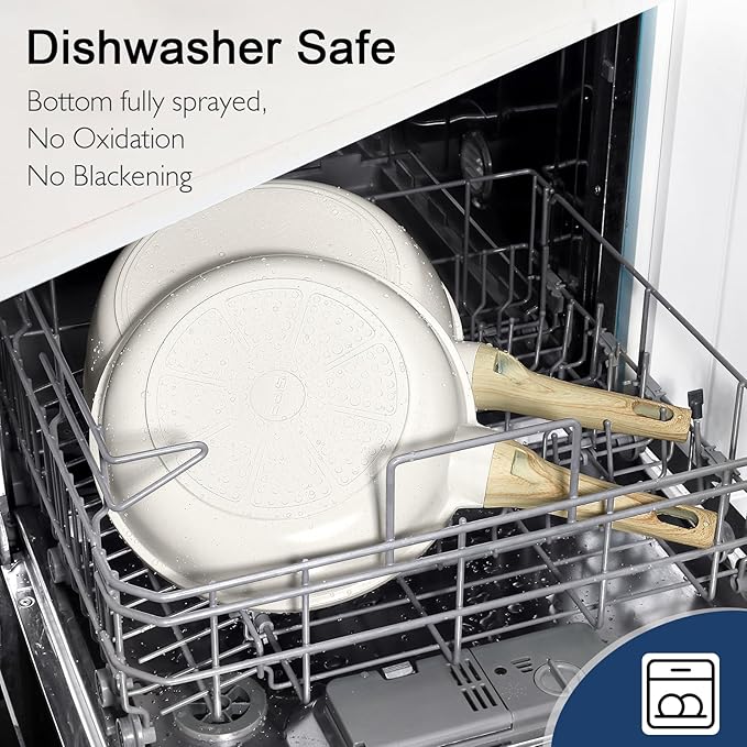 - Ease of Cleaning - Cleaned up with just a quick wipe of the sponge and some warm soapy water. The scratch-resistant ceramic coating maintains its nonstick surface through repeated dishwasher use