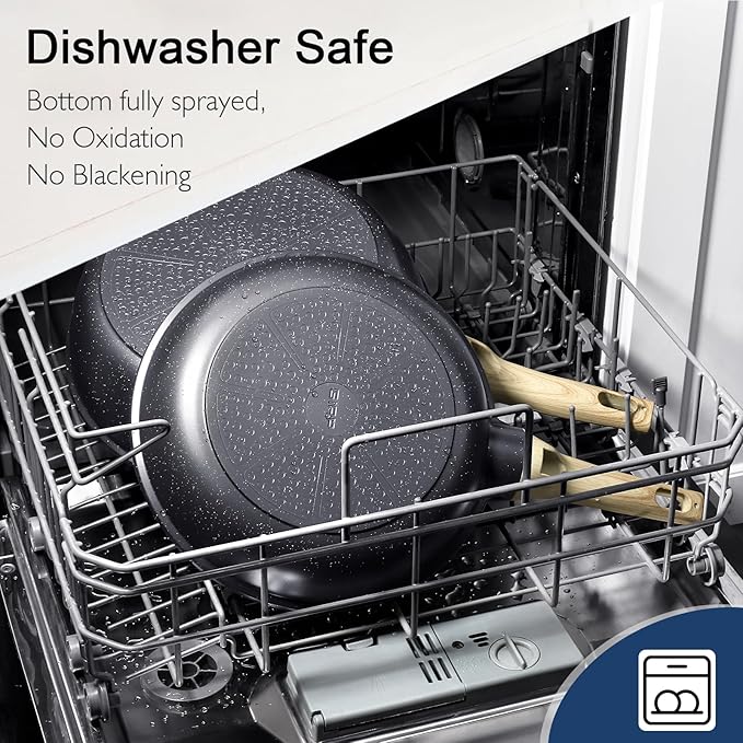 - Ease of Cleaning - Cleaned up with just a quick wipe of the sponge and some warm soapy water. The scratch-resistant ceramic coating maintains its nonstick surface through repeated dishwasher use