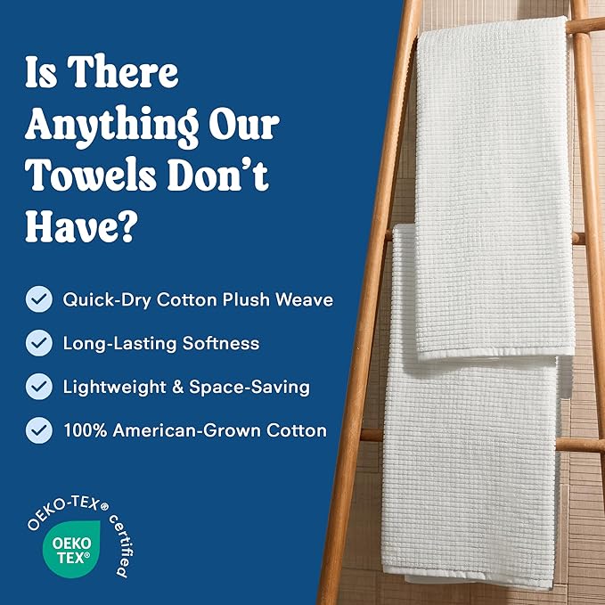 - Minimalist Waffle Design: With a refined waffle weave and checkered texture, these luxury bath towels add timeless elegance to any bathroom décor while offering lasting performance.