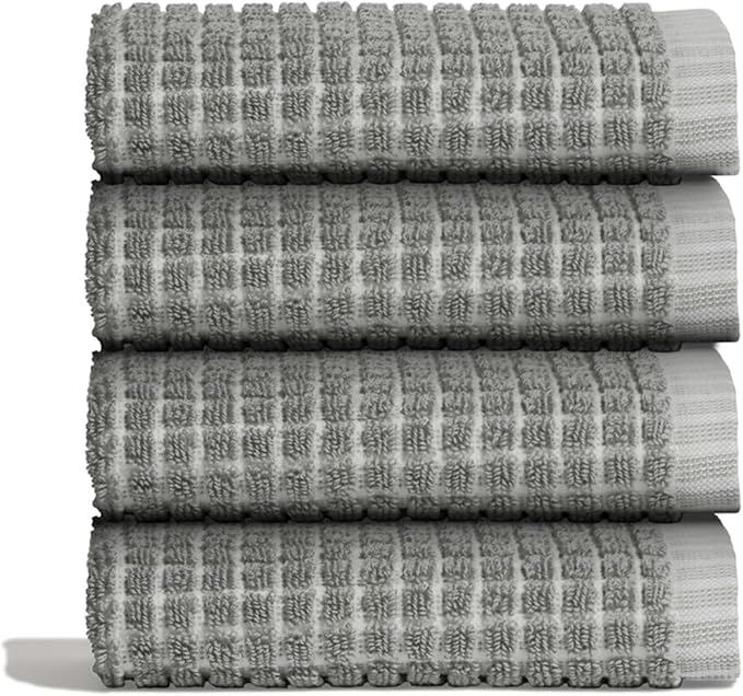 ONSEN Terry Cotton Waffle Face Towel Set – 4 Pack Luxury Cotton Face Towels, Quick Dry & Absorbent Washcloths – Soft, Lightweight, Durable Bathroom Towels for Everyday Use (Grey Fog, 12x12 in)