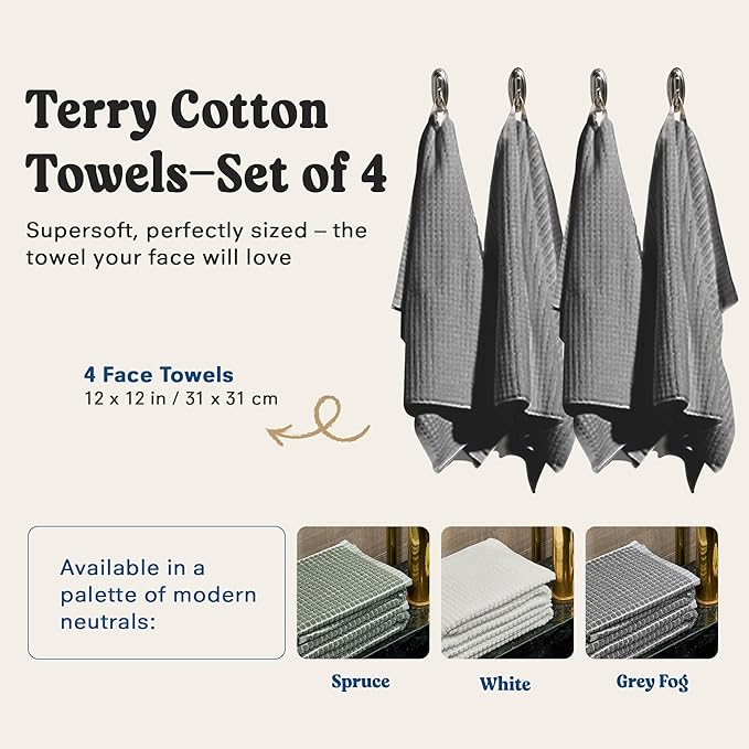 - Complete 4-Piece Set: The ONSEN Terry Cotton Waffle Face Towel Set includes 4 Face Towels (12x12 in), perfectly sized for daily routines, travel, or guest bathrooms.