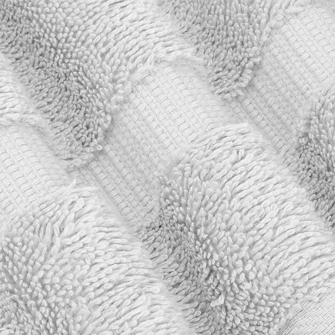 - HIGH-QUALITY TOWELS: These towels are crafted in Turkey with quality cotton that makes them absorbent, soft, and fluffy. These towels fluff up after the first wash, which allows you to feel spa grandeur in the comfort of your own home. The double-stitched hem and natural weave guarantee durability and strength.