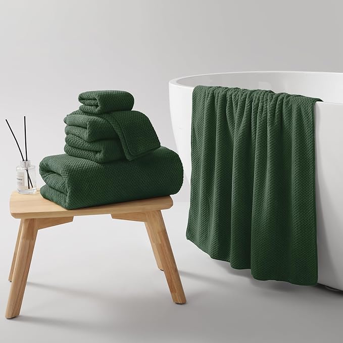 REDKISS 6-Piece Bath Towel Set - 2 Washcloths, 2 Hand Towels, 2 Bath Towels | Ultra-Fiber Coral Fleece, Super Absorbent, No Lint & No Fading | Perfect for Bathroom, Spa, Gym | Family -Olive Green