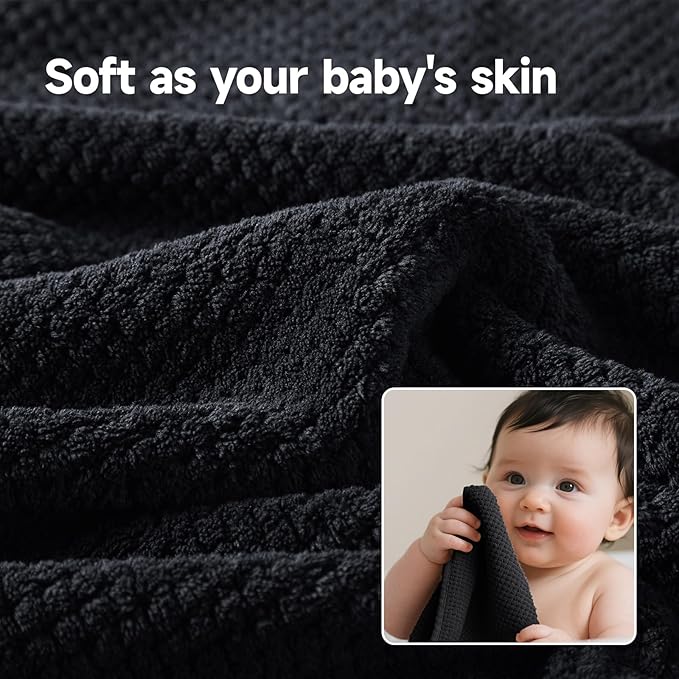 REDKISS 6-Piece Bath Towel Set - 2 Washcloths, 2 Hand Towels, 2 Bath Towels | Ultra-Fiber Coral Fleece, Super Absorbent, No Lint & No Fading | Perfect for Bathroom, Spa, Gym | Family & Adults-Black