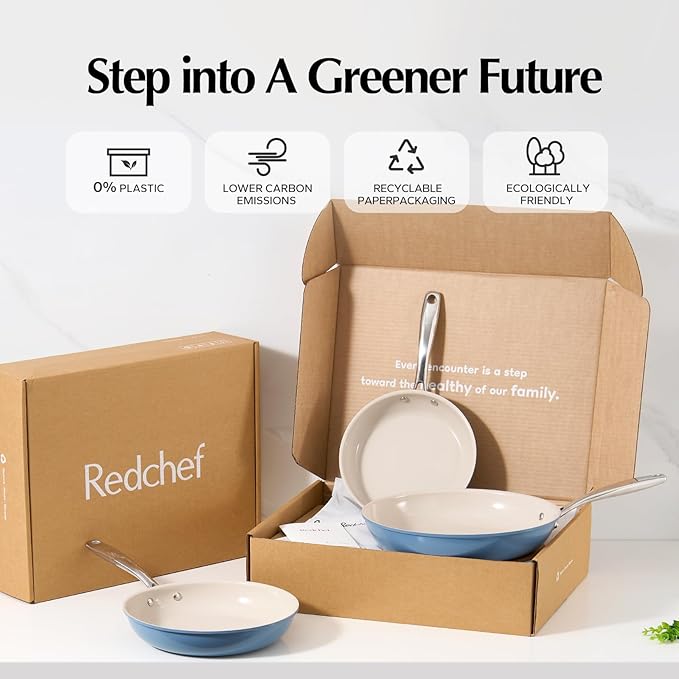 Redchef Nonstick Frying Pan Skillet, Ceramic Non-Stick Saute Pans, 9.5 inch Cooking Fry Pan with Stay Cool Handle, All Stovetops, Dishwasher/Oven Safe, PFAS-Free, Non Toxic (Blue)