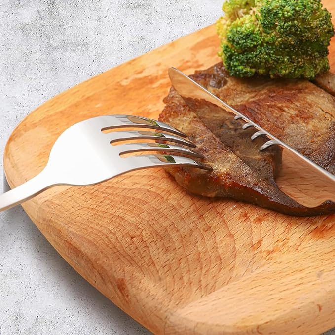 - Easy to Clean: Elegant design and superior quality knife, fork and spoon, mirror polished utensil set not easy to collect stains and easy to care. Dishwasher safe.