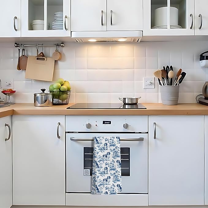 Chinoiserie Cavalier King Charles Spaniel Kitchen Towels, Cavalier Spaniel Gifts Decorative Dish Tea Towels, Blue and White Grandmillennial Dog Hand Towels for Kitchen Bathroom, 16x24 Inch