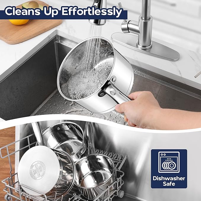 - Suitable for all Stovetops: the stainless steel saucepan is constructed of try-ply bottom, with an aluminum core for even heat distribution and quick heating, also compatible with all cooktops, including induction, gas, electric, and ceramic, meets your versatile cooking needs