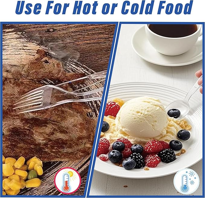 - Abundant Quantity: The clear plastic silverware comes in a total of 360 pieces, and this set provides ample utensils for a significant number of guests. The set includes 150 forks, 150 spoons and 60 knives, ensuring that everyone has a complete dining experience.