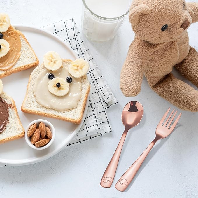 - IDEAL TRANSITIONAL CUTLERY: This set of 12 includes 6 kid forks and 6 kid spoons in rose gold. Ample quantity for daily needs by toddlers, kids, preschoolers, and school-age children, and allows for an easy transition to full-sized utensil