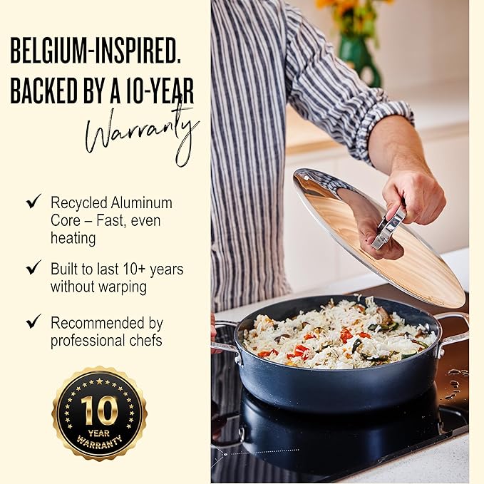 - Quality in Every Cookware: Seasoned with a mix of Belgian design, sustainable materials and high-quality finishes, Alva sets the bar high for its pots and pans. Our cookware is a timeless yet contemporary collection made with the company’s signature made-to-last spirit. Alva cookware ensures quality and durability by selecting premium materials, precision engineering, triple-layer application, 15-point quality control and final testing by Belgian chefs.