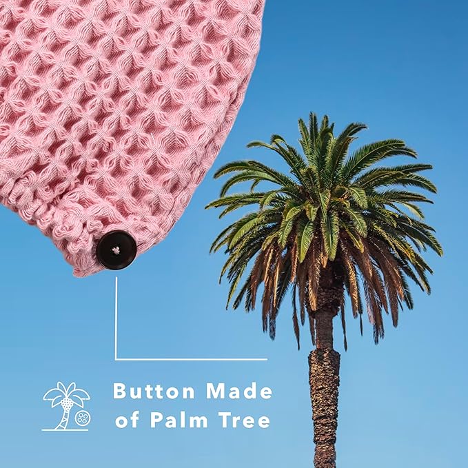 100% Organic Cotton Hair Drying Waffle Towel Wrap for Women | Absorbent & Quick Dry Head Turban for Wet Hair in Shower Sauna Spa, Extra Large for Long Straight Curly Plopping Button (Pink, 2 PACK)