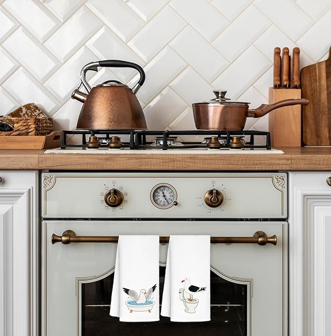 Seagull Beach Hand Towels -Set of 2, Seagulls Gifts for Bird Lovers, Seagull Bird Decor, Coastal Nautical Beach Sea Gull Decorative Hand Dish Tea Towels for Kitchen Bathroom, 16x24 Inch
