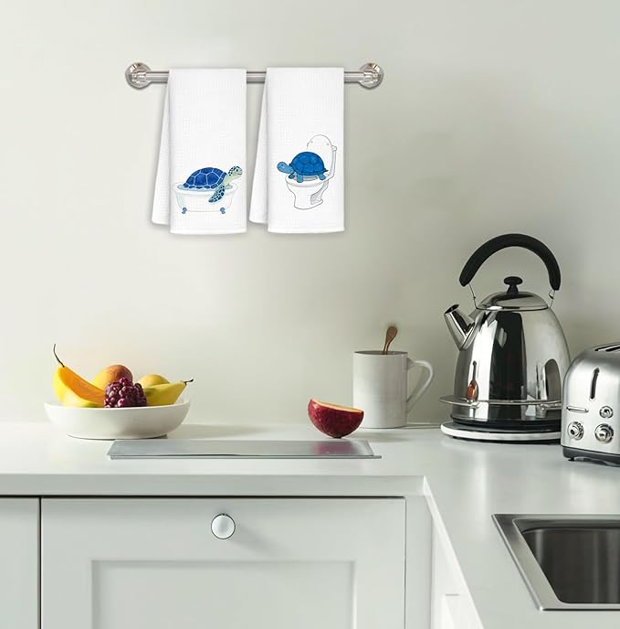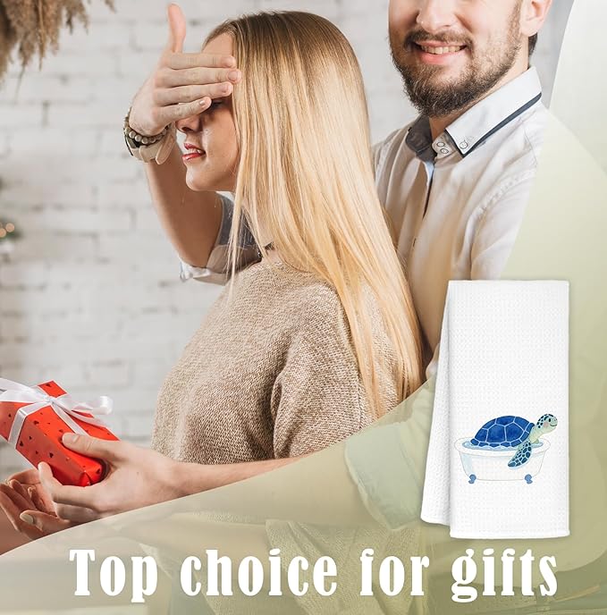 Sea Turtle Hand Towels for Bathroom Set of 2, Sea Turtle Decor, Turtles Gifts, Coastal Nautical Beach Decorative Hand Towels, 16x24 Inch