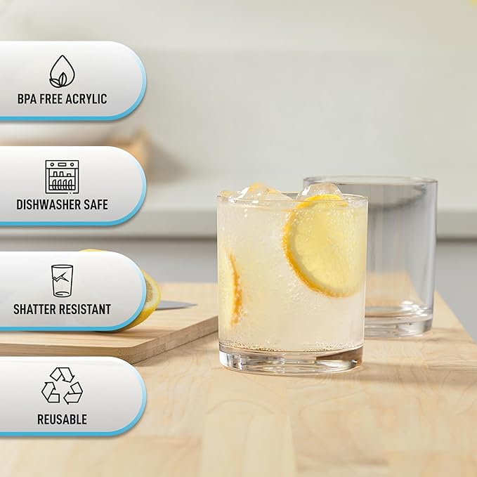 - DAILY WATER GLASSES: We have designed these acrylic drinking glasses with a smooth and polished rim and large mouth opening for easy refill. Present colorful drinks and garnishes in these elegantly designed drinkware.